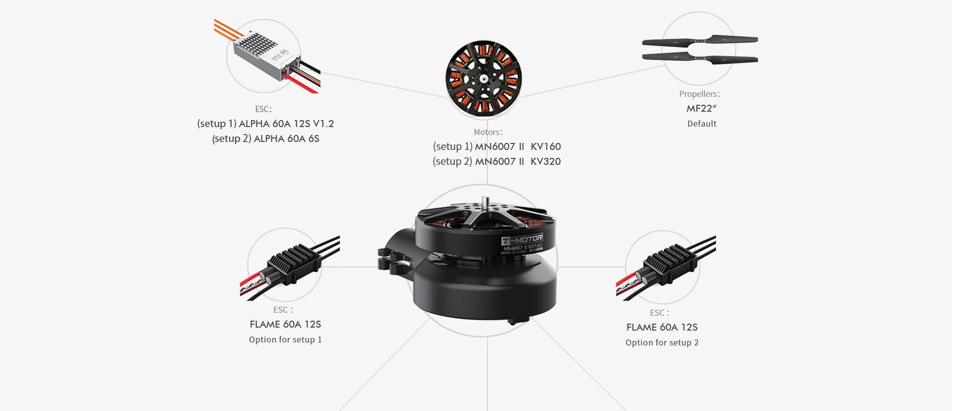| 6007Ⅱ-X | 25mm/28mm | 6007Ⅱ | KV160 | ALPHA 60A 12S V1.2 | MF2211 | FA22.2*7.2, NS22*6.6, P22*6.6 | FLAME 60A 12S |
